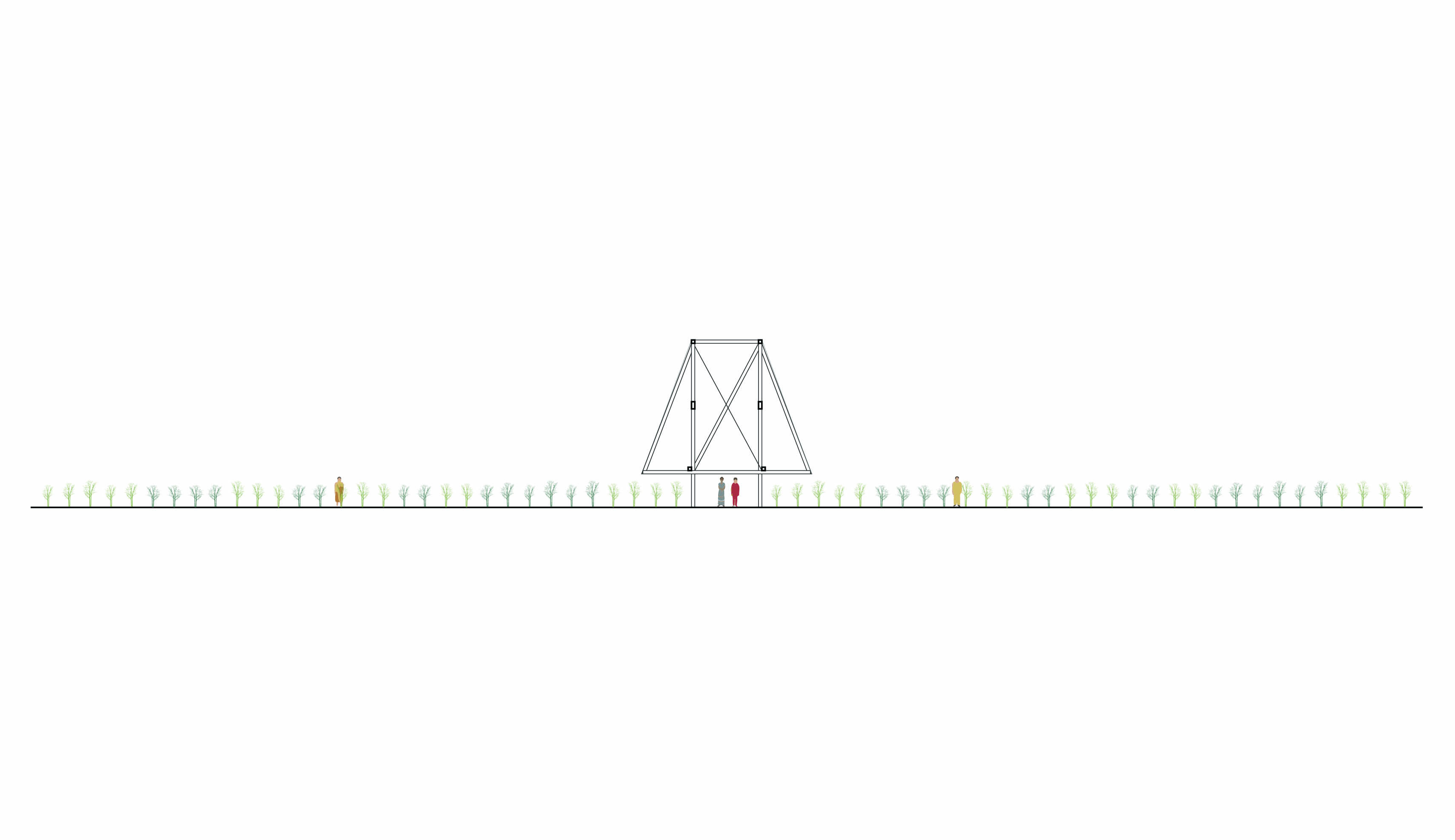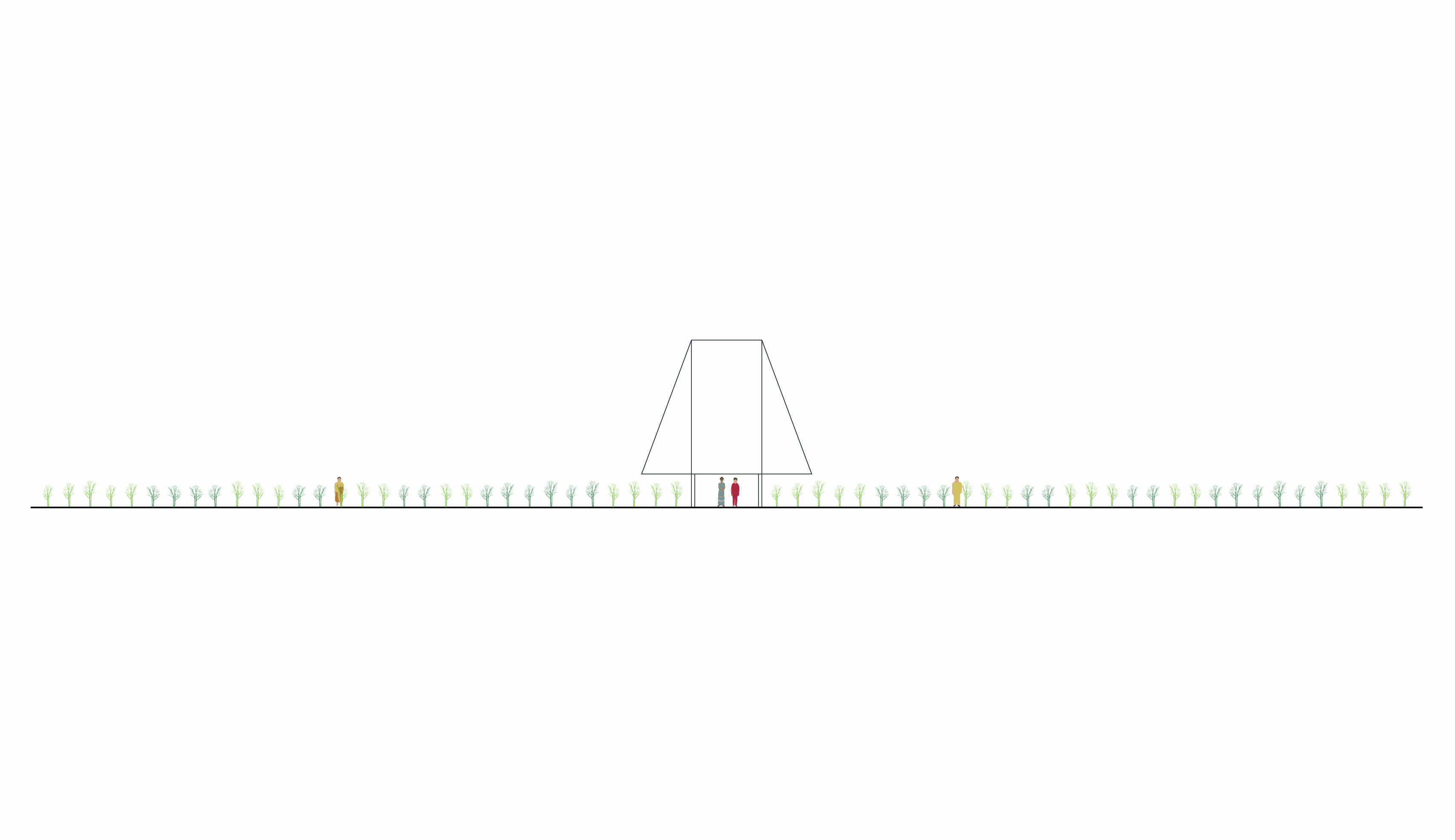 Clad in reused fabric from a construction site, this installation makes its stance clear: a commitment to place, to action, and to the awareness that sustainability is not an accessory — it is what envelops us entirely.
