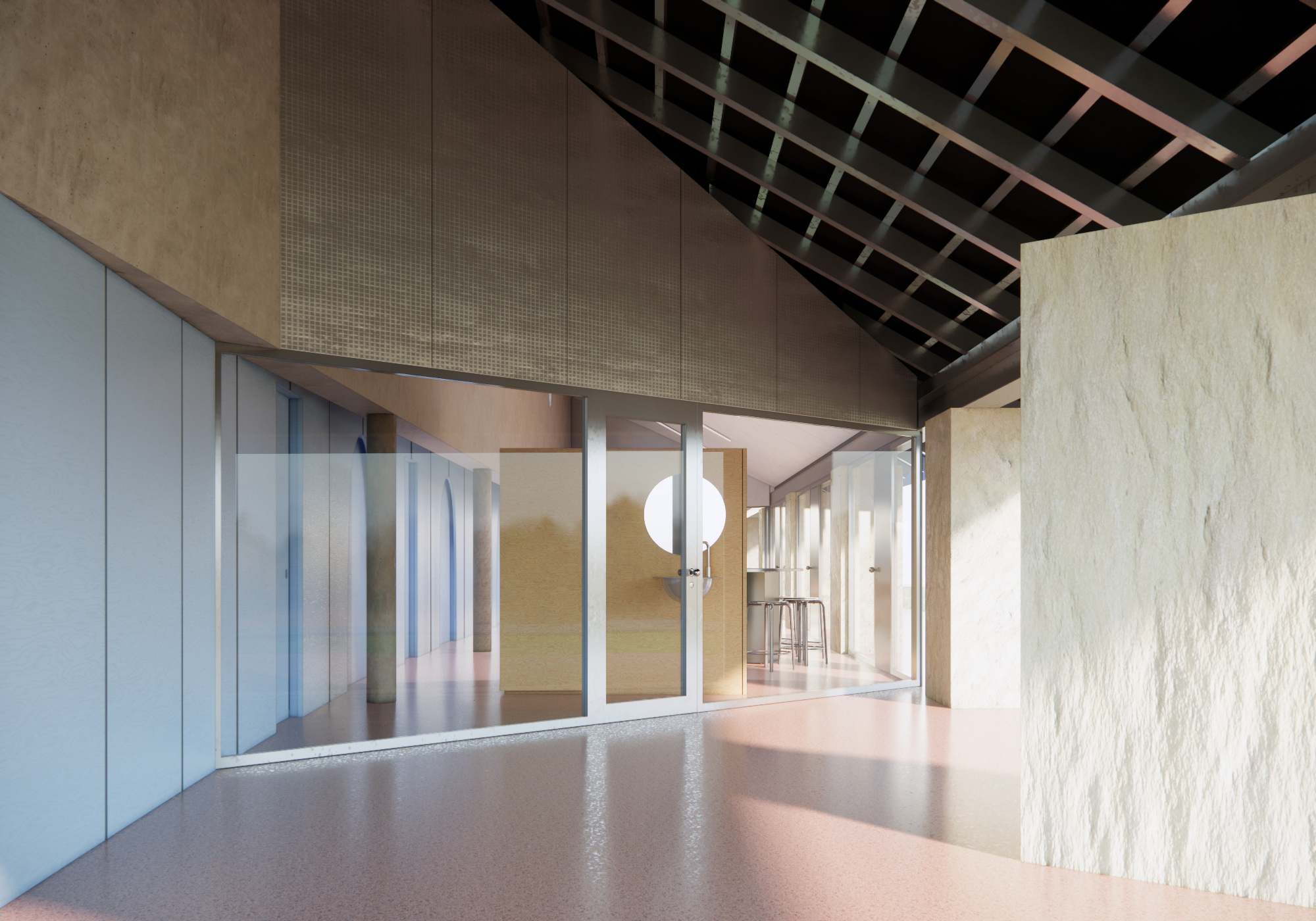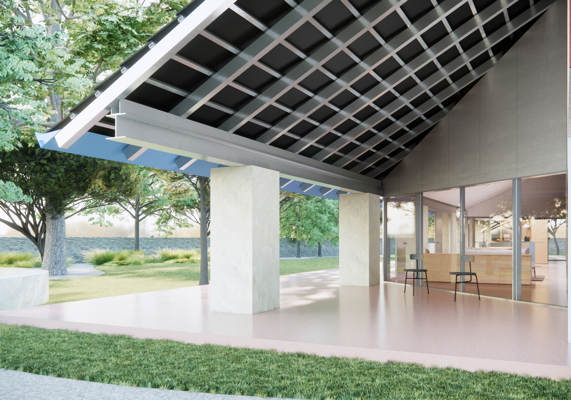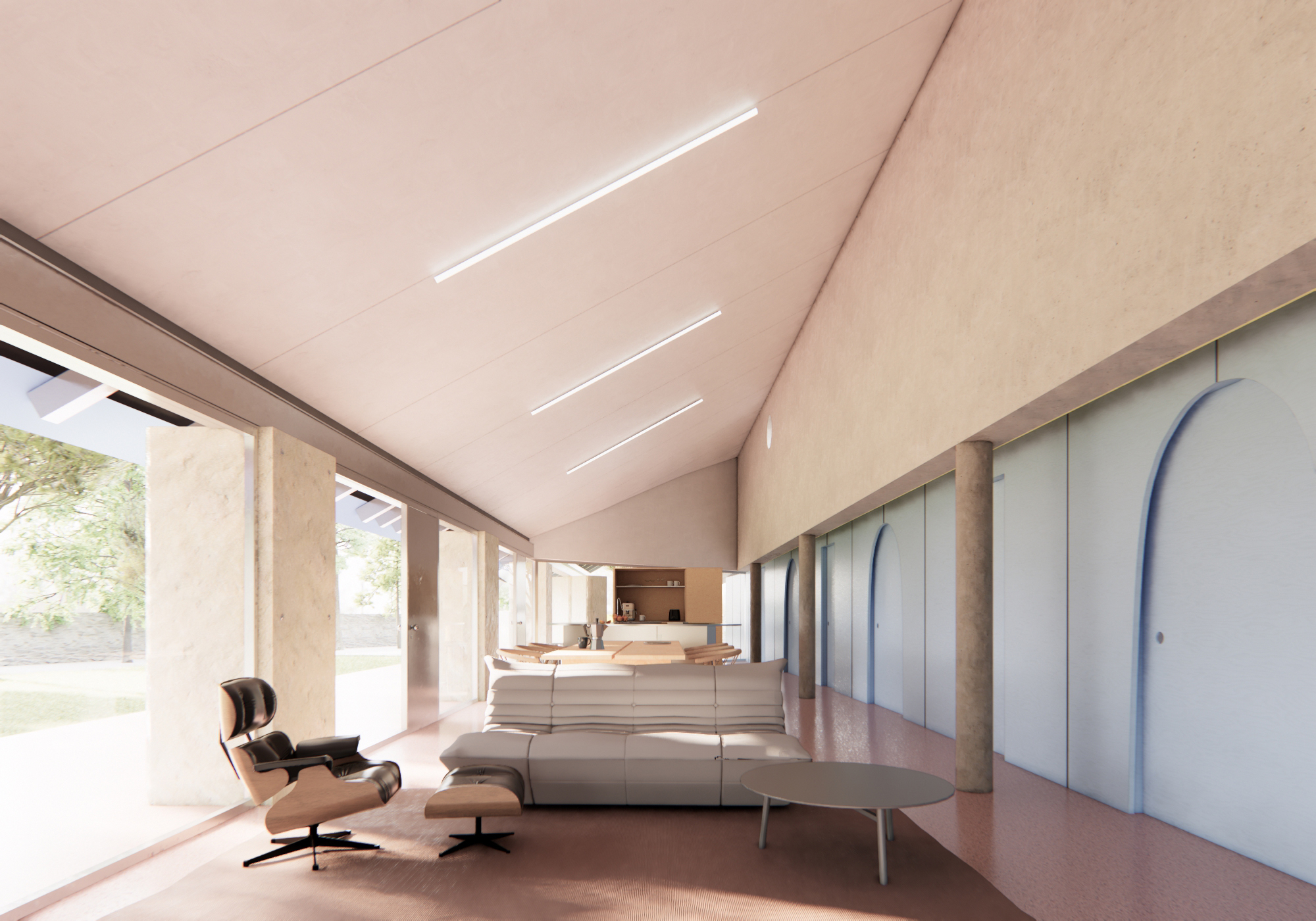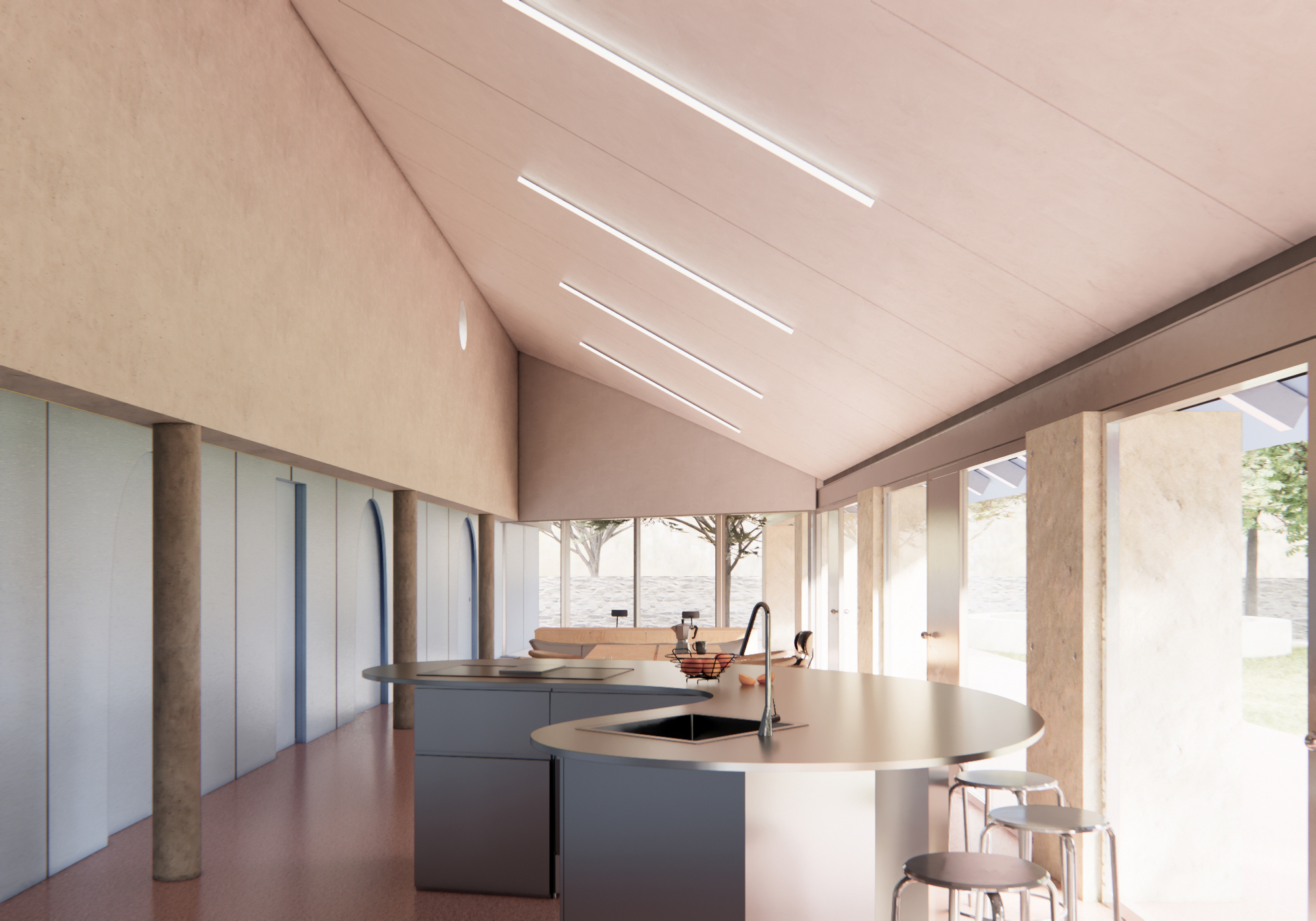 The house is conceived as a synthesis of dwelling: reduced to what is necessary, stripped of ornament, and free from the formal excesses that characterise much of contemporary construction. Everything that remains has a purpose — structural, functional, or environmental. The relationship with the outdoors is direct, without superfluous mediation, and the material palette is honest, legible, and durable.