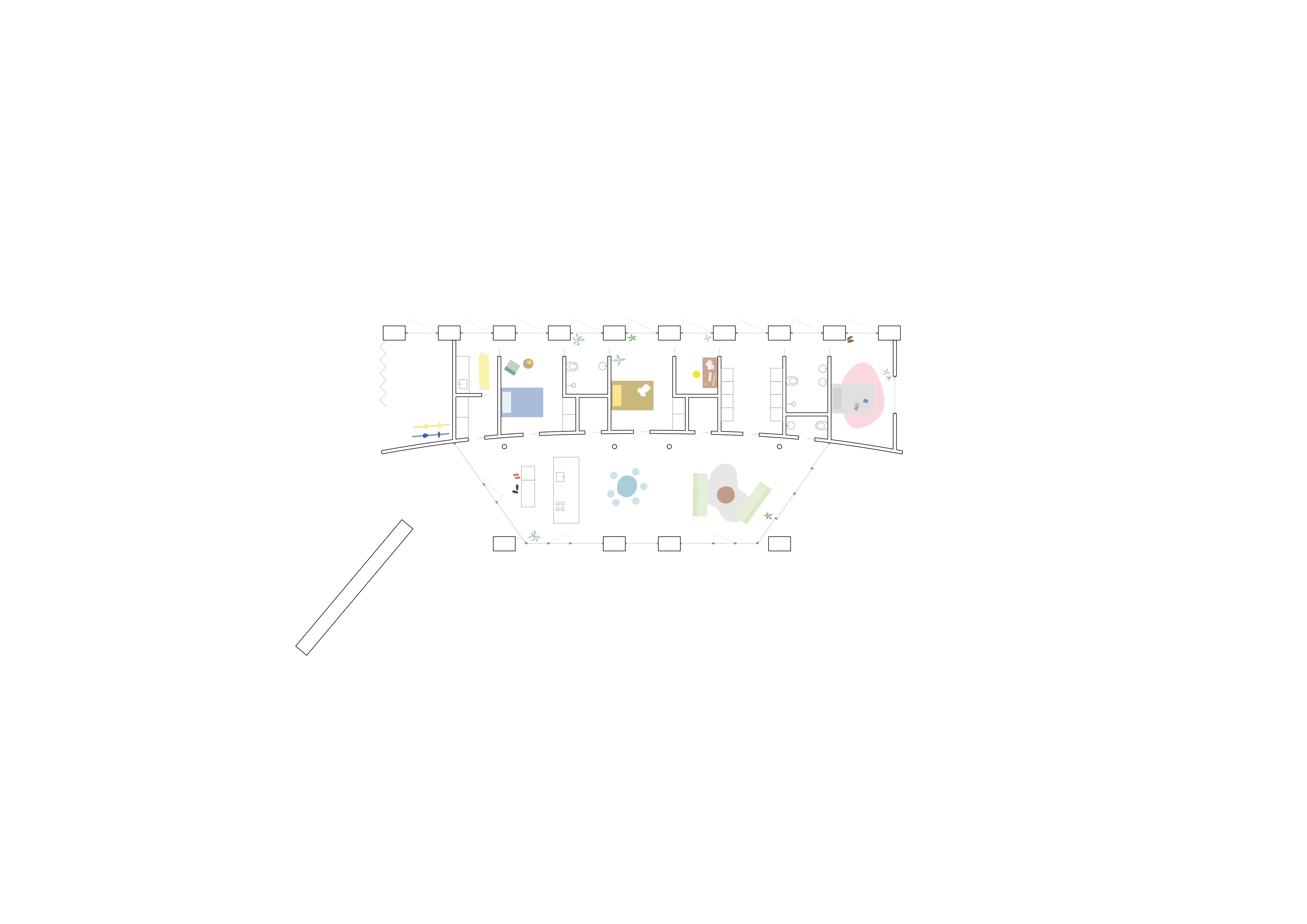 The spatial organisation is based on a regular metric grid, structuring the layout without the use of corridors. The arrangement of wet areas, living spaces, and bedrooms follows a logic of maximum efficiency, ensuring a clear floor plan and ease of construction. This modular system guarantees both spatial and structural coherence throughout the house.