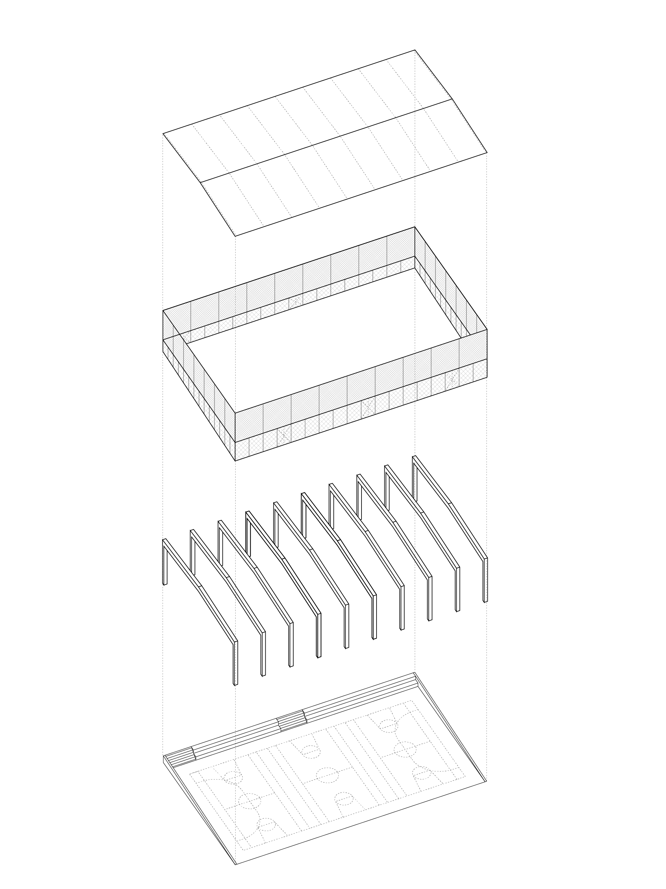 The proposal for the renovation of the Santos Simões School follows the guidelines set out in the schematic plan, introducing two new volumes — Classrooms and Sciences — which strengthen the functional and spatial relationship with the existing buildings. One of these volumes has an independent entrance, while the other is directly connected to the current complex, organising the school grounds as a continuous system of learning and social interaction.
