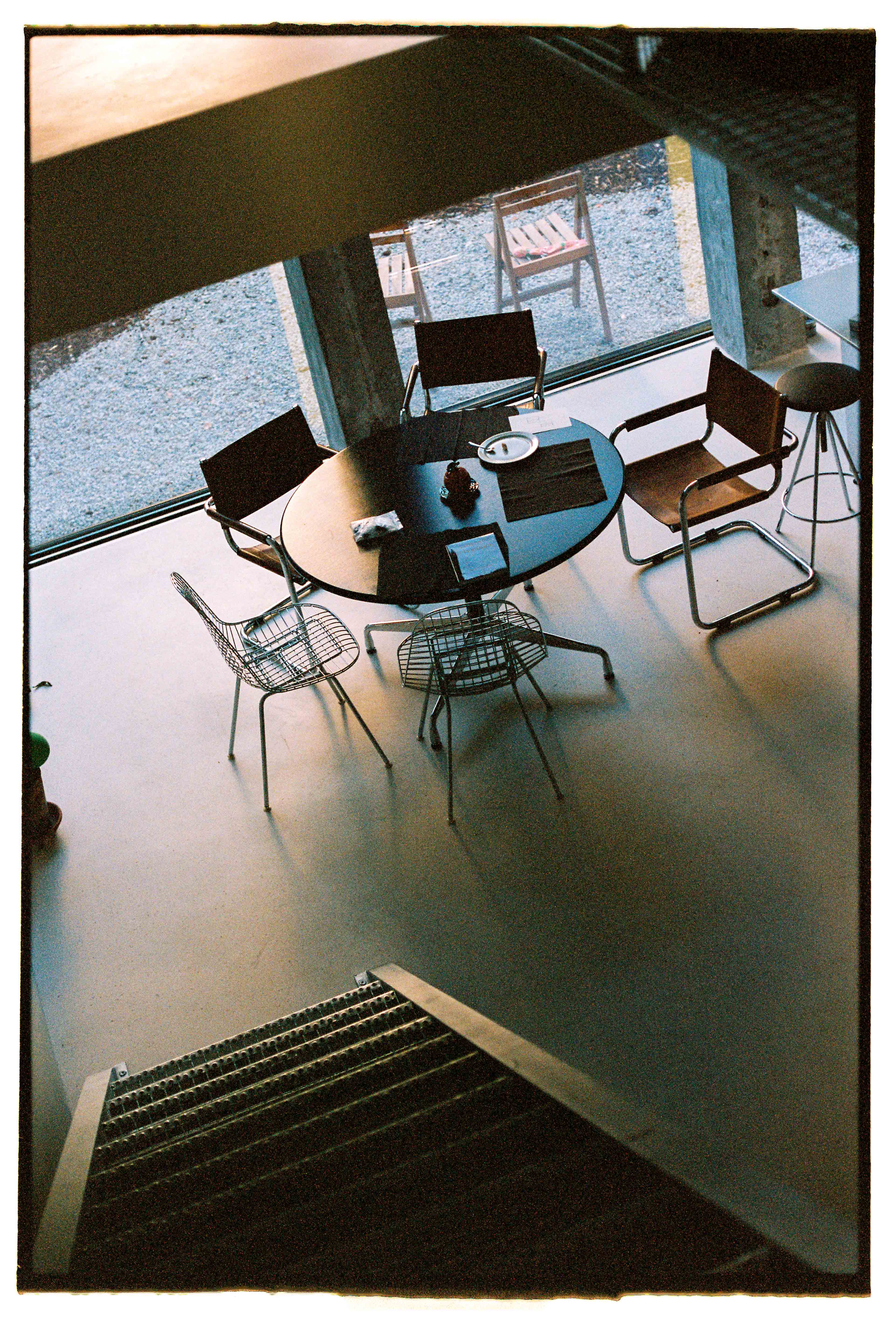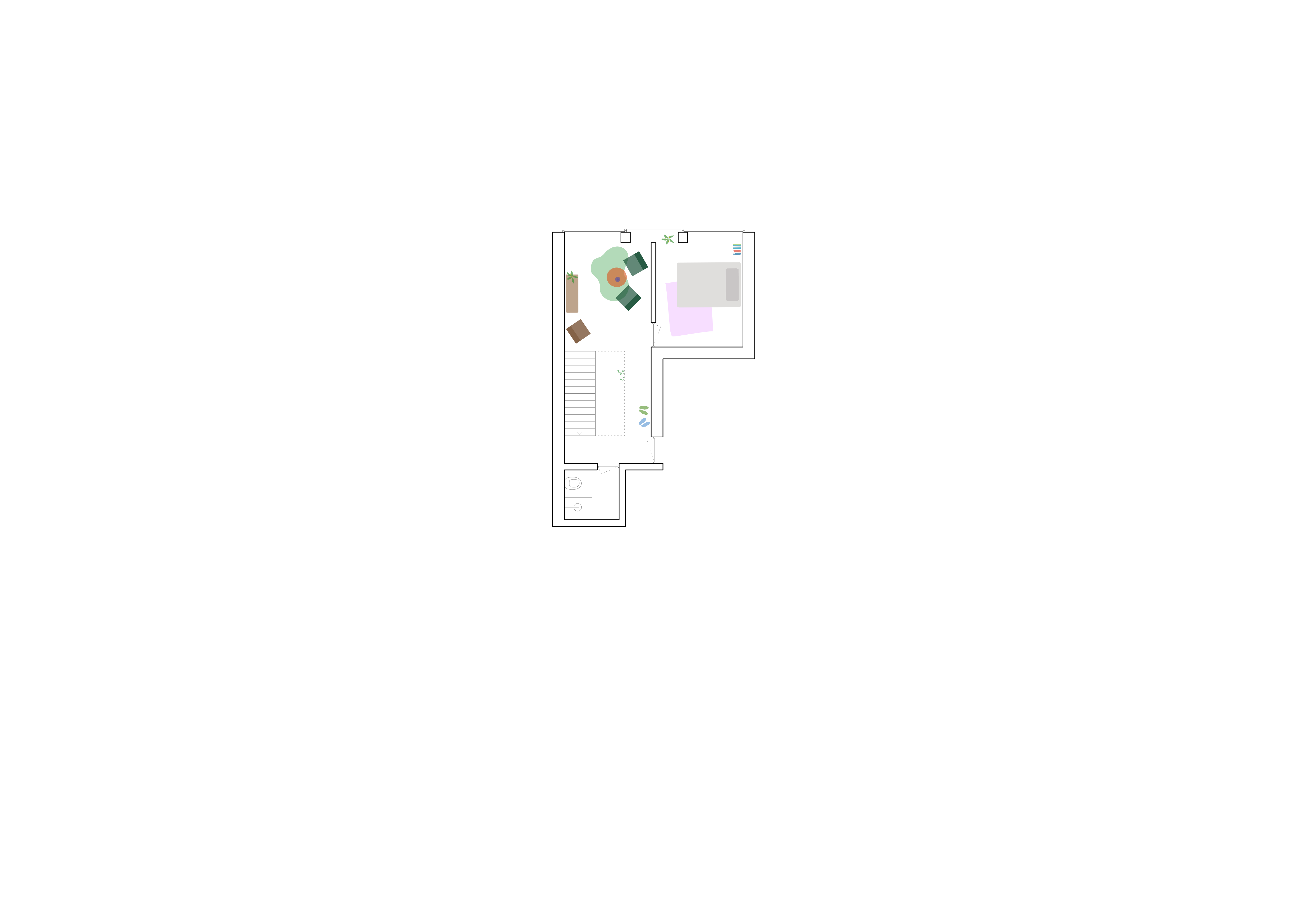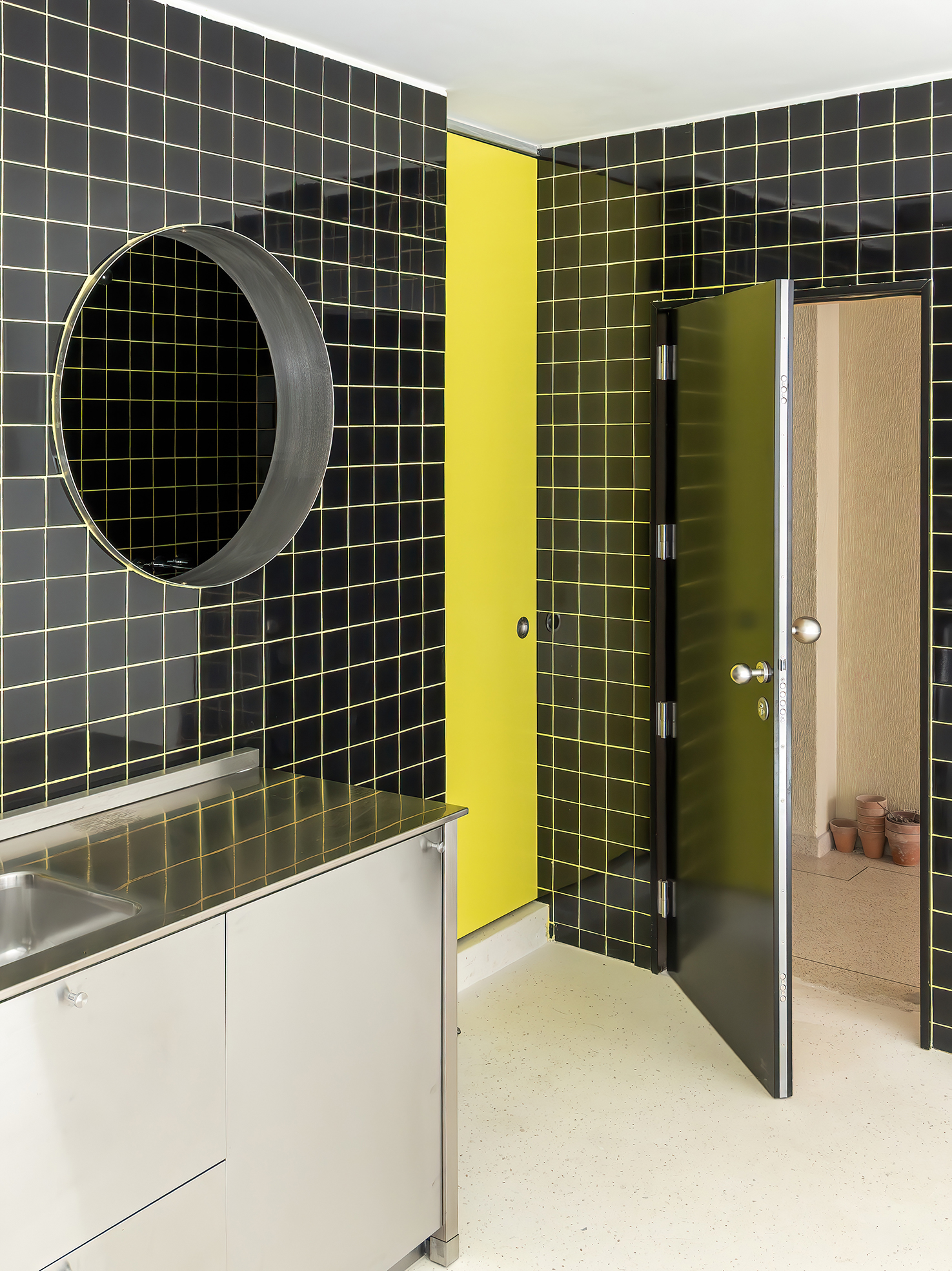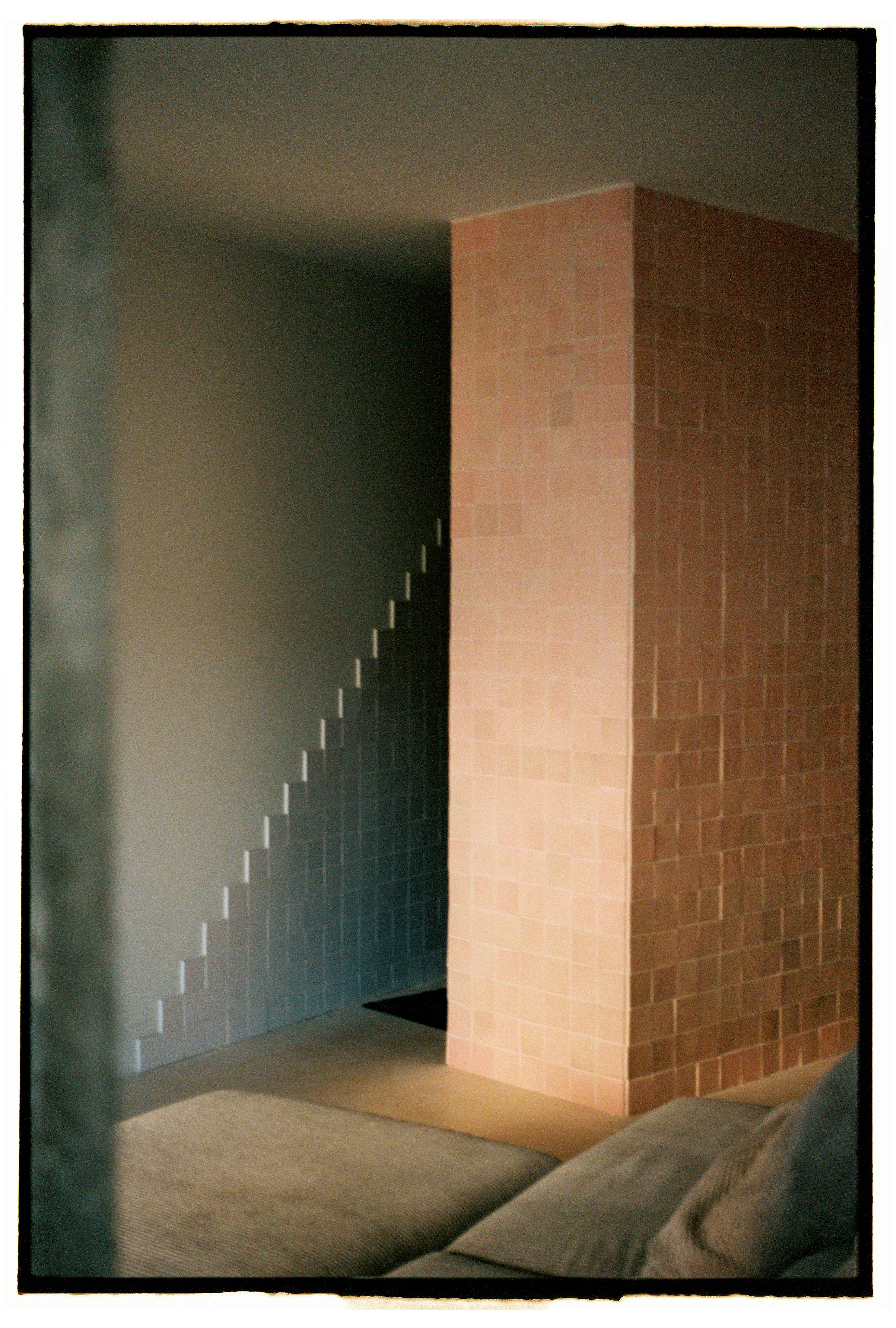 O lote deu lugar a duas habitações: uma unidade frontal — um estúdio compacto com instalação sanitária — e uma casa principal em duplex, voltada ao jardim. No piso superior, localizam-se o quarto e o escritório; no piso inferior, um salão longitudinal estende-se entre dois pátios, permitindo uma vivência contínua entre interior e exterior. Um único objeto central organiza o espaço e incorpora múltiplas funções do programa — arrumação, circulação e divisões técnicas.