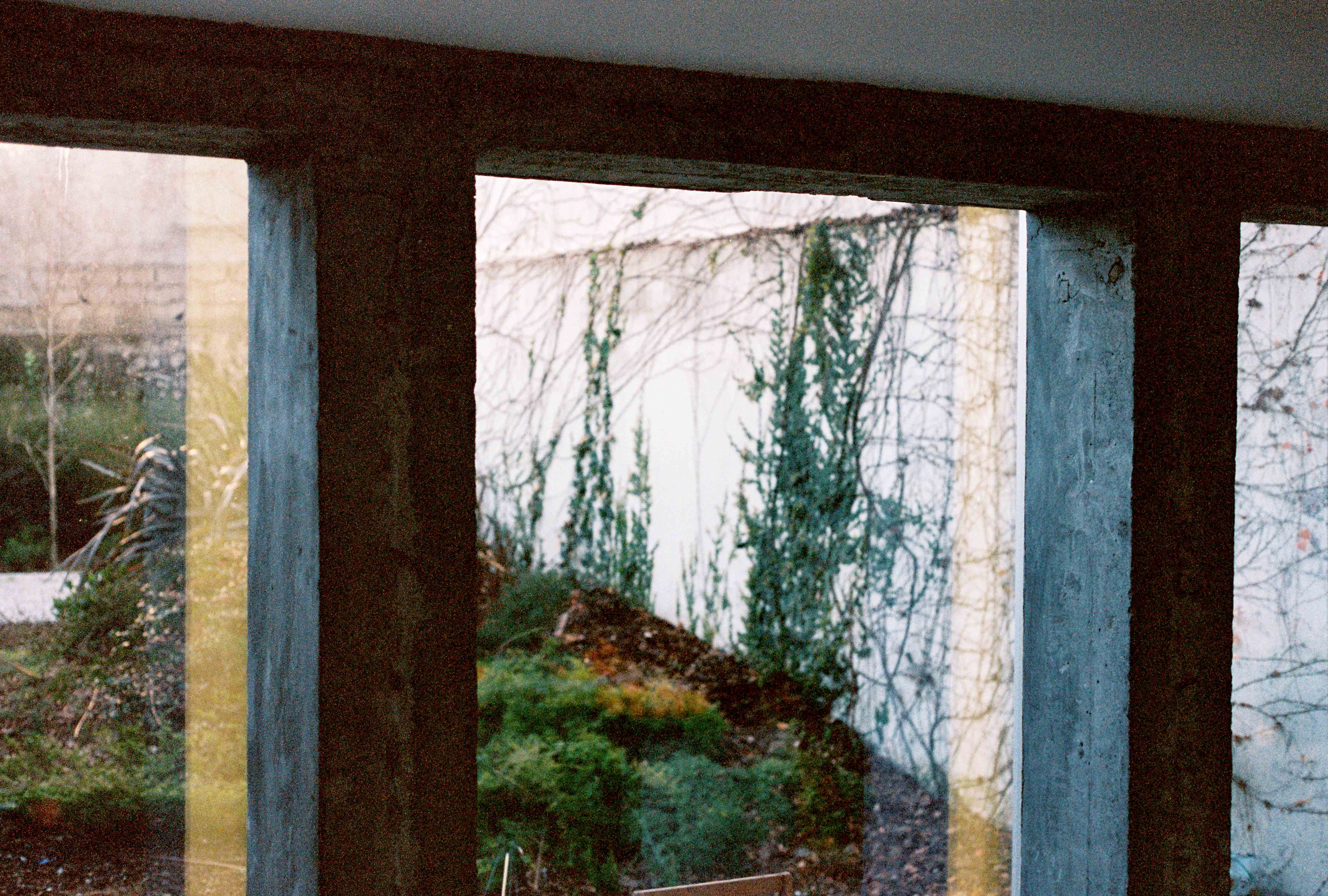 A estrutura original em betão permanece exposta, assumida como elemento expressivo e construtivo. A fachada parece ter sido erguida sobre uma pré-existência: da casa antiga, emerge uma nova composição, marcada por um pano envidraçado de duplo pé-direito que contrasta com as pequenas aberturas superiores, vestígios do edifício original. O conjunto assume uma presença ambígua, quase animal — com ‘pernas’ visíveis e corpo retraído — sugerindo um organismo em tensão entre o passado e a sua nova forma habitada.